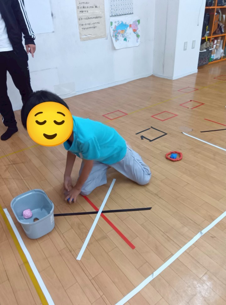 ボール取り競争では、地面に置かれたボールを素早く箱の中に入れていきます!!