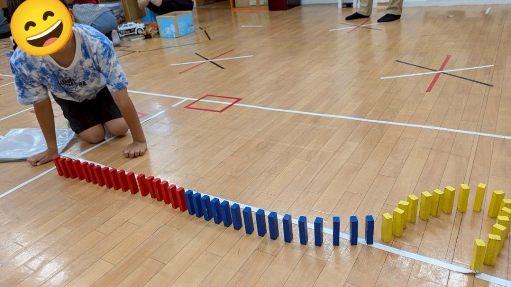 自由時間には、ドミノやベイブレードを使いそれぞれ自由にマイペースで過ごします。♬