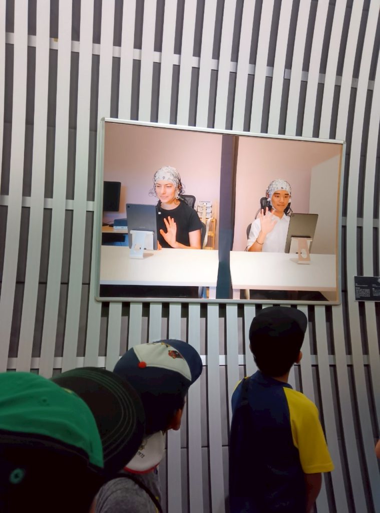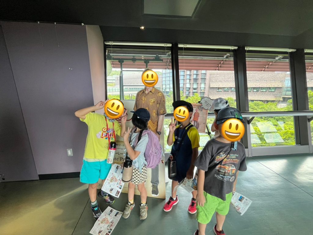 綺麗な景色内の大学構内を回ってファカルティ(教授)ポスターではスカイウォークにいた等身大パネルの教授の写真を探したりと児童なりに科学に触れることが出来ました(^^♪