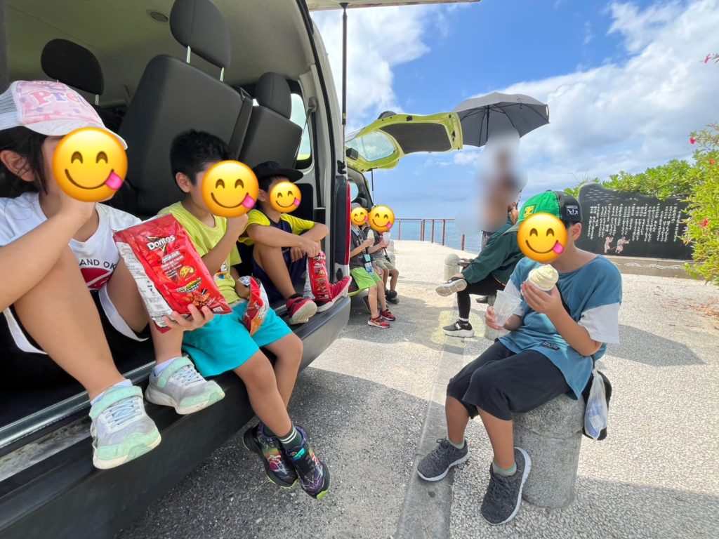 おやつはOIST内のイオンで買ったお菓子を『谷茶海岸』で海を見ながら食べました🍦