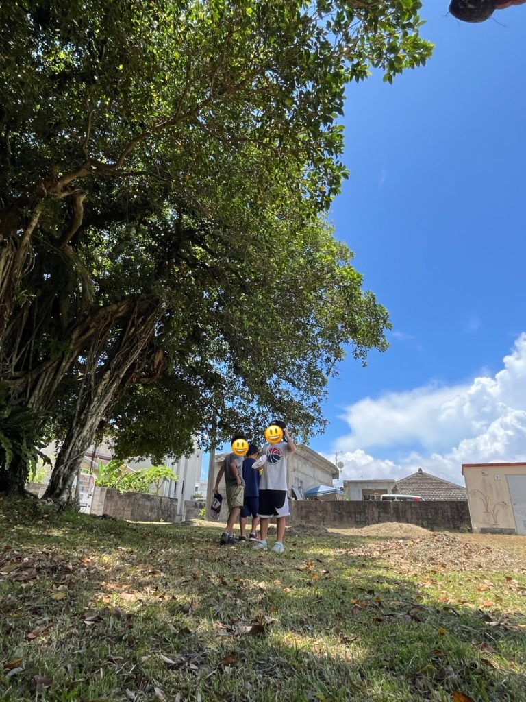 ご飯が終わったら”自由時間”です。虫を捕まえたり樹齢300年以上の大きなガジュマルの気の周りをぐるぐるして遊びました!!
