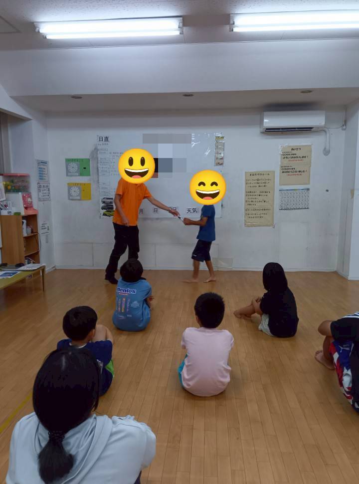 みんなが集まったら今日1日の流れを把握するために始まりの会を行いました!