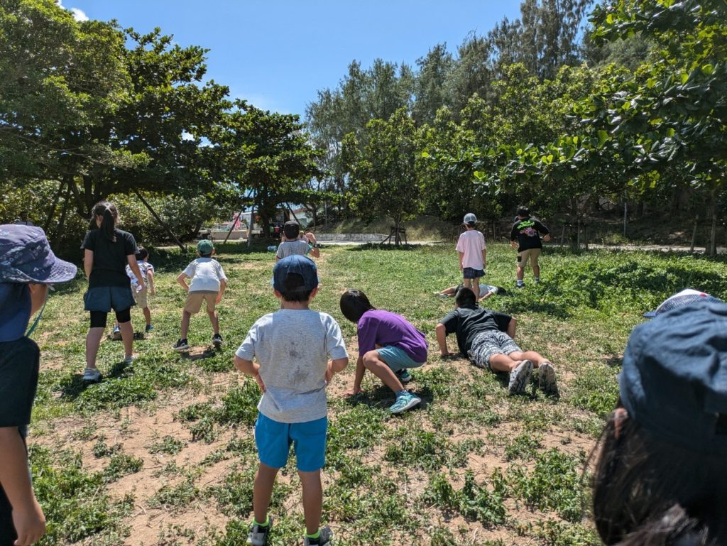 スタッフ、児童も全員でだるまさんが転んだを行いました😊
