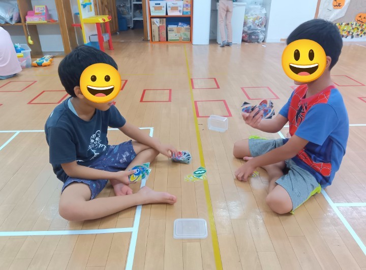 朝は他事業所の児童も一緒にカードゲームやブロック遊びをして自由時間を過ごします♪♬