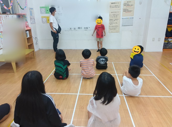 始まりの会では1日の流れを確認します!特に今日は外出課題のため、出発の時間も聞き逃さないようしっかりと確認♪