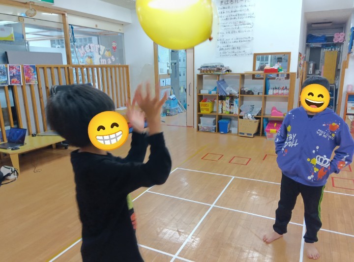風船遊びををして自由時間を過ごしていました(^^♪