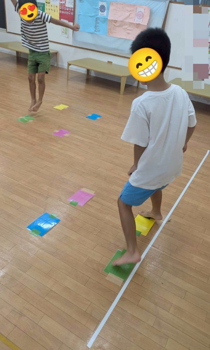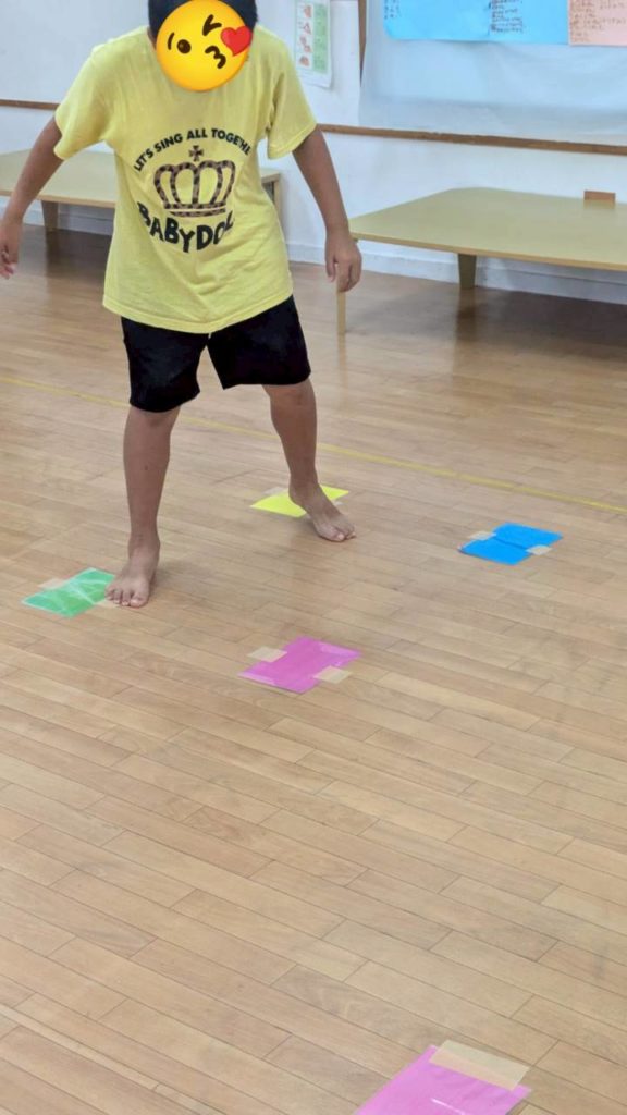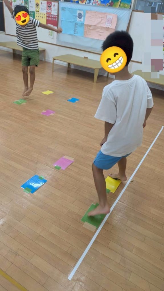 どの子も真剣に間違えない様に指示のカラーの枠に飛んでいます