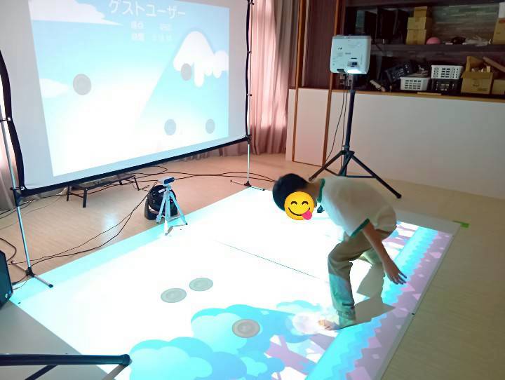 〇画面に映し出される動きを瞬時に判断して動いたり、リズムに合わせて動いたり、空間を判断して動いたりすることで、判断力や空間認知能力を養う。