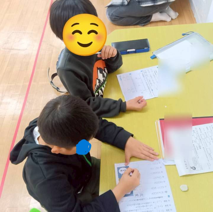 早い下校の児童達から先に学習から取り組みました✍15分間という時間で、皆集中しています。