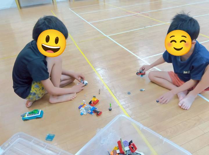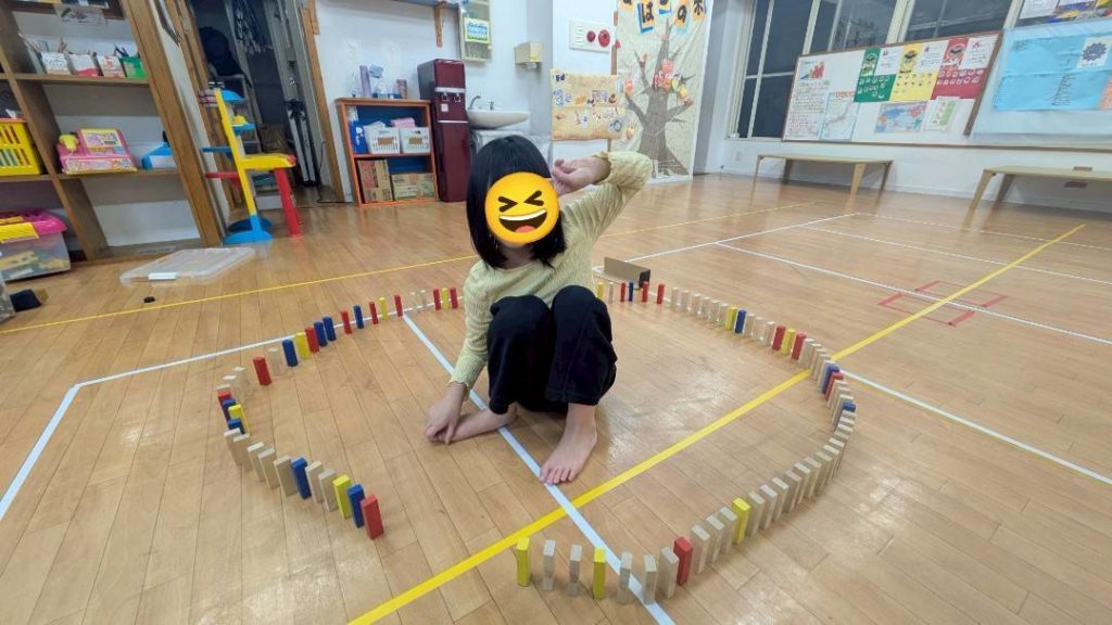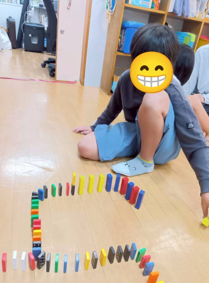 自由時間には「長ーいドミノを作るまはろっ子も🎶」倒さない様に慎重に「サークル」を作成していました👏