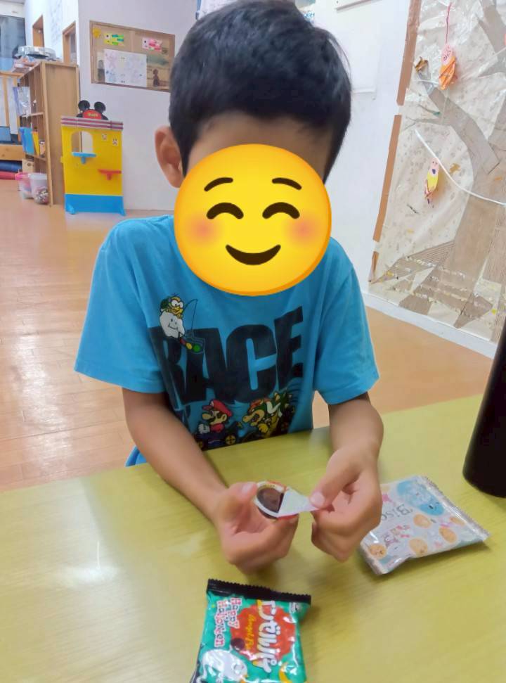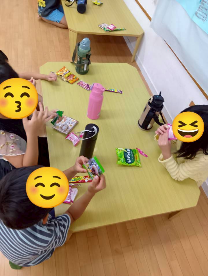 普段のおやつは職員さんが子どもたちの好きなお菓子を選んで準備するのですが今日はたくさんの駄菓子やお菓子の中からそれぞれ、自分好みの「マイ おやつ」を選んでゲットしていきます🥰😉