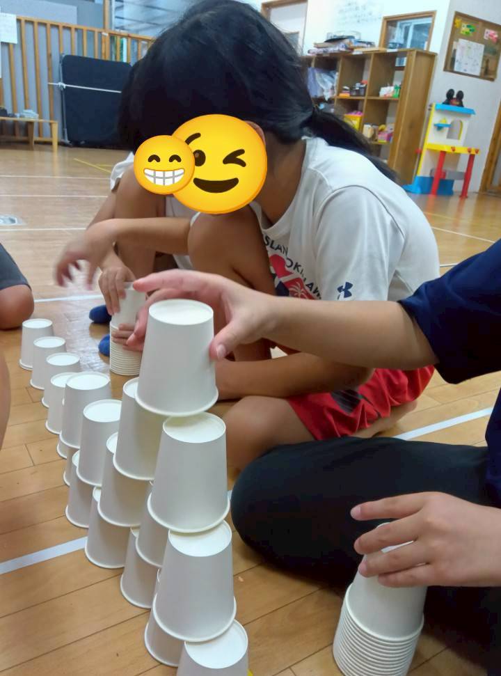 今日の高学年の課題は……『紙コップタワー』です!✨