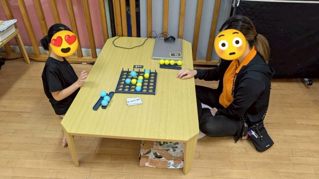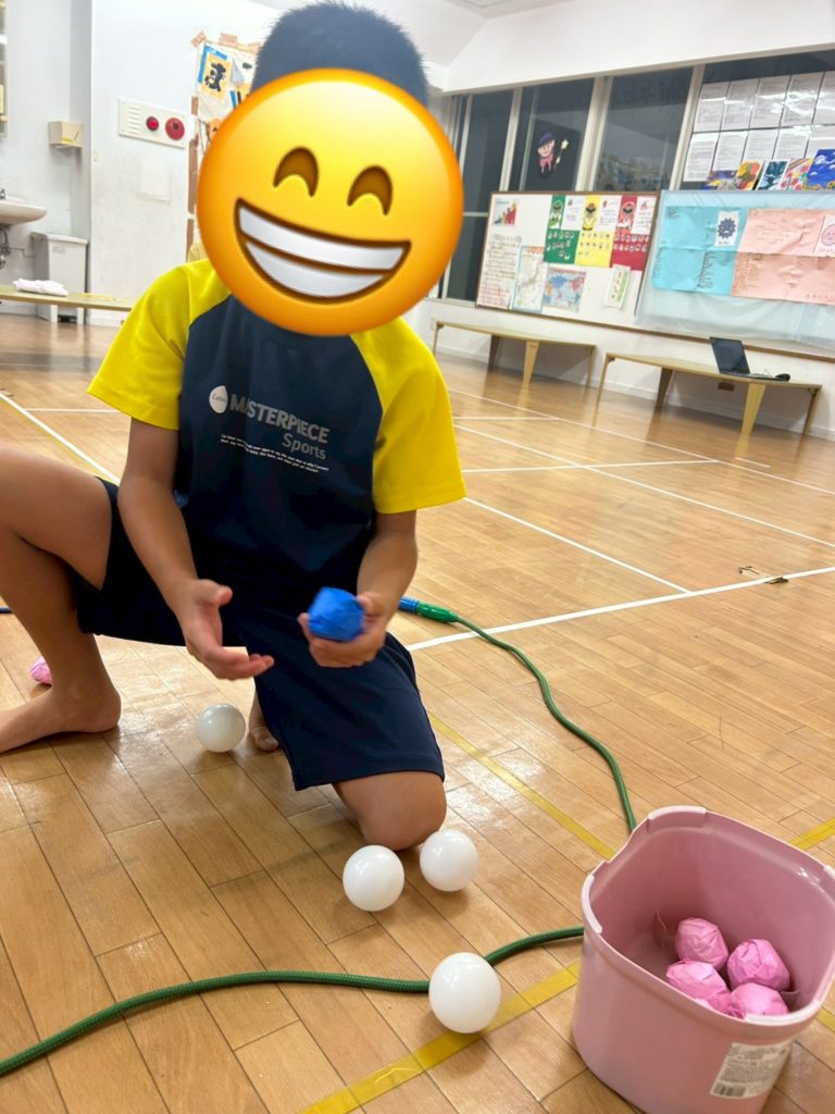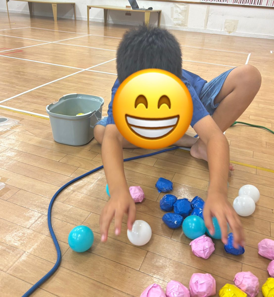 「そっちは青色じゃなくて黄色!」「ボール後ろにもあるよ!」と、まはろっ子たちの掛け声が教室中に響きます🎶